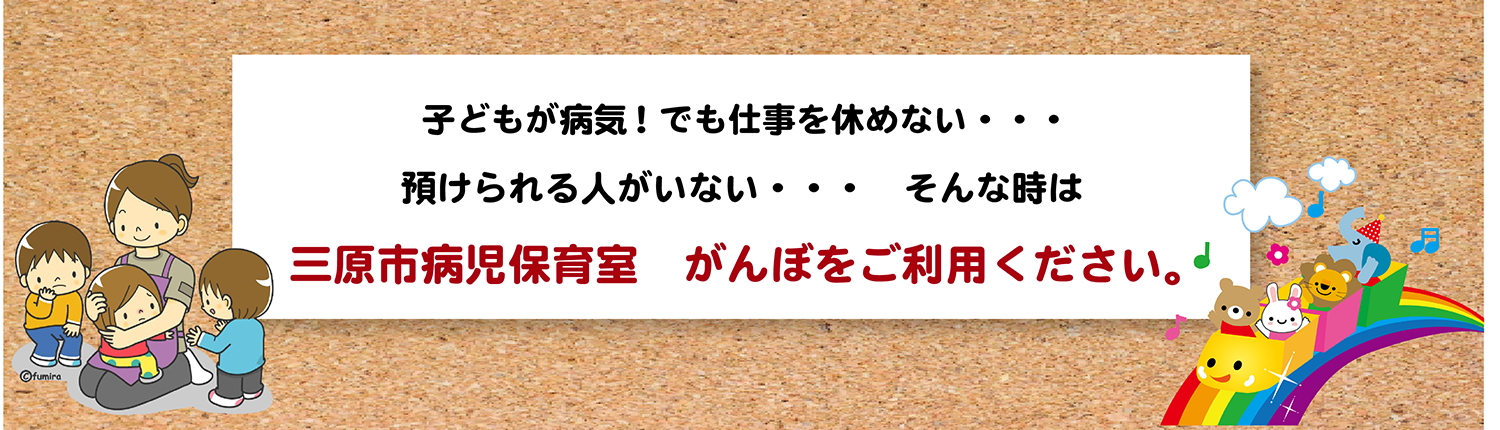 「がんぼ」は、子育て支援の一環として三原市が設立し、みはらこどもクリニックが運営を委託されている病児保育室です。事前登録のうえ、お子様の病気で 困ったときにはご利用をご検討ください。